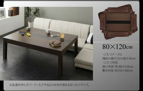 ◆こたつテーブル単品:こたつテーブル《こたつテーブル》■80 120 cm【サイズ】幅80 奥行120 高さ39cm【製品重量】24.5kg【梱包サイズ/重量】87 128 16cm / 25.5kg■全サイズ共通【天板耐荷重】約20kg【材質】プリント化粧繊維板、ラバーウッド、MDF、5mm強化ガラス 仕上げ:ウレタン塗装【カラー】ウォールナットブラウン ブラック【ヒーター】 正方形(75 75) :300W石英管ヒーター 長方形(75 105)・(80 120):510W石英管ヒーター いずれも中間スイッチ式【電源コード長さ】約3m【梱包数】1【生産国】ベトナム【備考】ヒーター部メーカー1年保証付き ※組立品※商品のサイズ・重量は概算です。