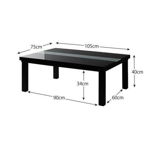 ■75 105 cm【サイズ】幅75 奥行105 高さ40cm【商品重量】26.5kg【梱包サイズ・重量】81 118 16cm/29kg■全サイズ共通【天板耐荷重】約20kg【材質】パーチクルボードフラッシュ板、MDF、5mm強化ガラス 仕上げ:UV塗装【カラー】グロスブラック/ラスターホワイト【ヒーター】 正方形(75 75) : 300W石英管ヒーター 長方形(75 105)・(80 120): 510W石英管ヒーター いずれも中間スイッチ式【電源コード長さ】約3m【梱包数】1【生産国】ベトナム【備考】ヒーター部メーカー1年保証付き ※組立品※鏡面仕上げは天板、天板側面に施しております。